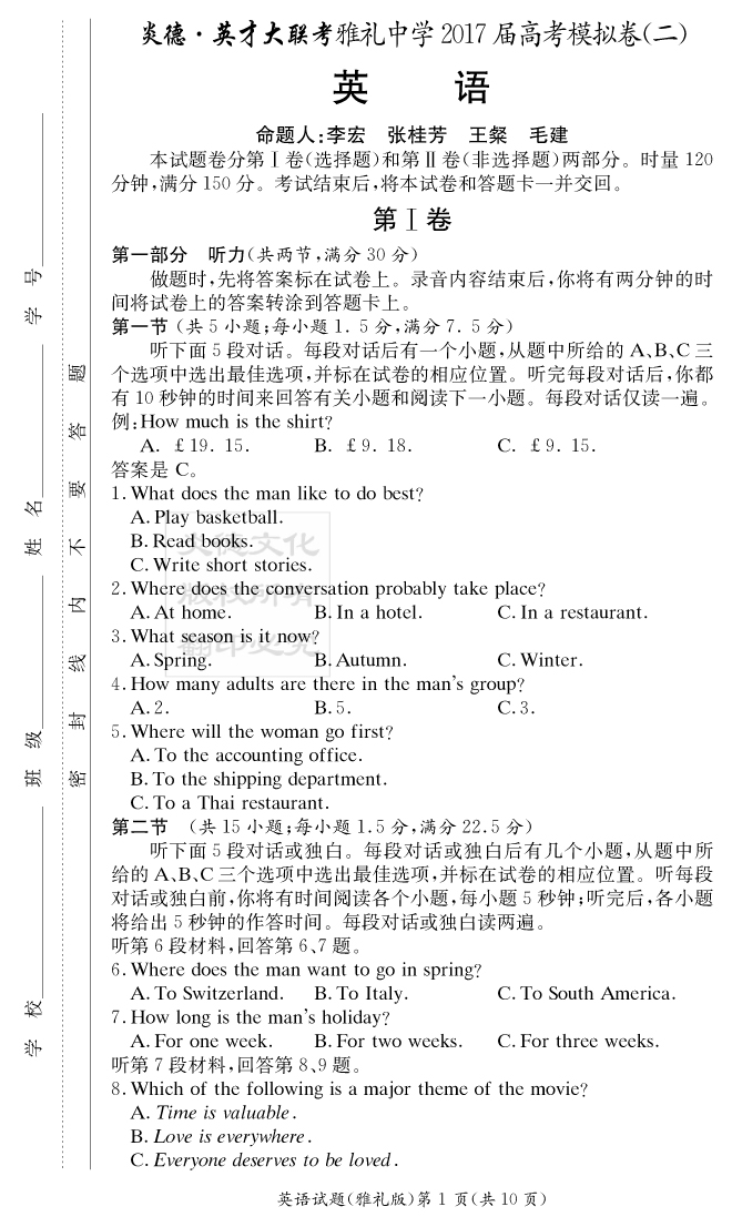 | 資源類別: | 名校月考 | |