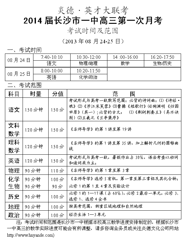 下一篇:炎德英才大聯(lián)考長沙市一中2014屆高三月考試卷考試時間和范圍(第1-11次)