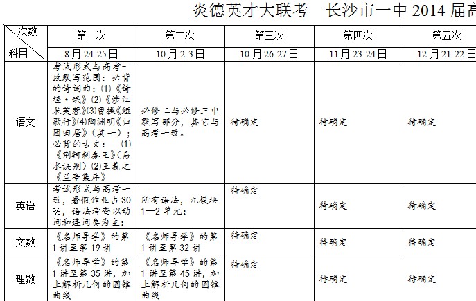 下一篇:炎德英才大聯(lián)考長沙市一中2014屆高三長沙市一中第二次月考考試時間和范圍(2013.10.02