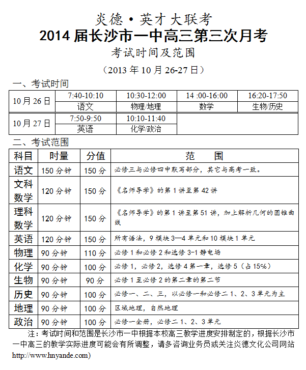 來源:炎德文化點擊:2013-10-15 17:08:24收藏本文當前位置:考試范圍 長沙一中 高三 正文