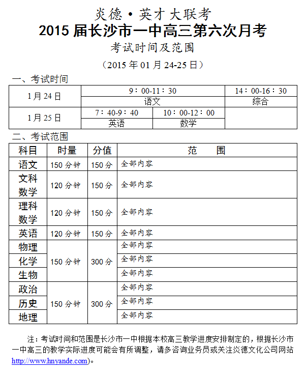 下一篇:炎德英才大聯(lián)考長沙市一中2015屆高三第7次月考考試時間和范圍(2015.02.26-27)