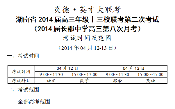 下一篇:炎德英才大聯(lián)考長郡中學(xué)2014屆高三第一次模擬(第9次月考)考試時(shí)間和范圍(2014.05.0