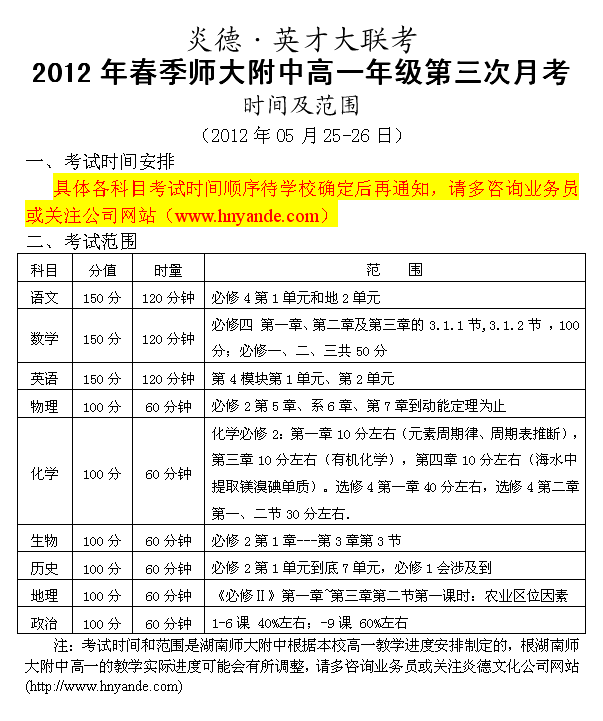 上一篇:2012春季師大附中高一期中考試時間及范圍