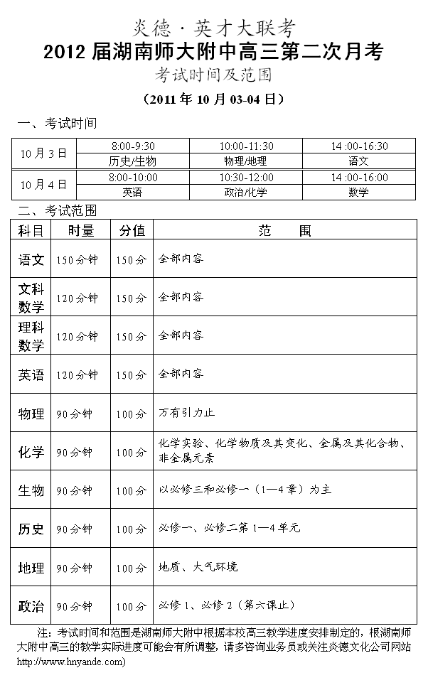 上一篇:炎德英才大聯(lián)考湖南師大附中2012屆高三第一次月考考試時間和范圍
