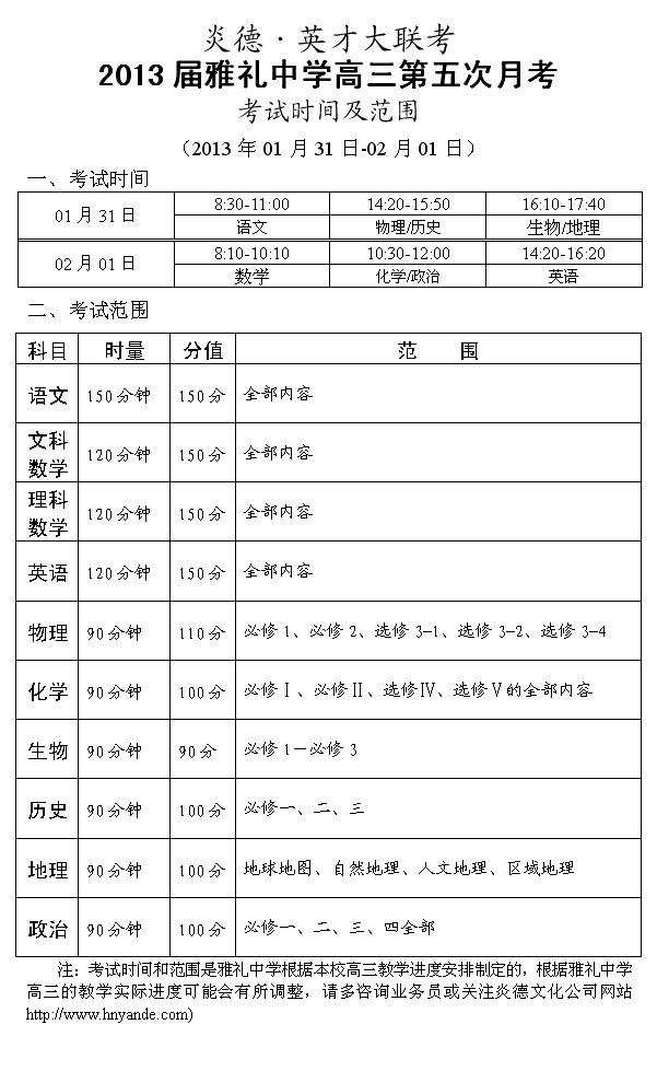 來(lái)源:炎德文化點(diǎn)擊:2013-01-25 15:09:02收藏本文當(dāng)前位置:考試范圍 雅禮中學(xué) 高三 正文