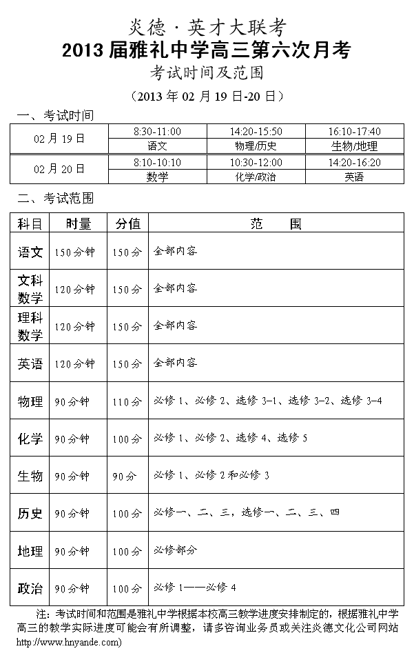 來源:炎德文化點擊:2013-02-19 17:31:22收藏本文當(dāng)前位置:考試范圍 雅禮中學(xué) 高三 正文