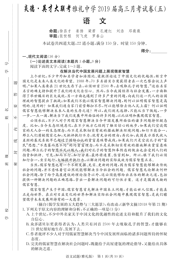 | 資源類別: | 名校月考 | |