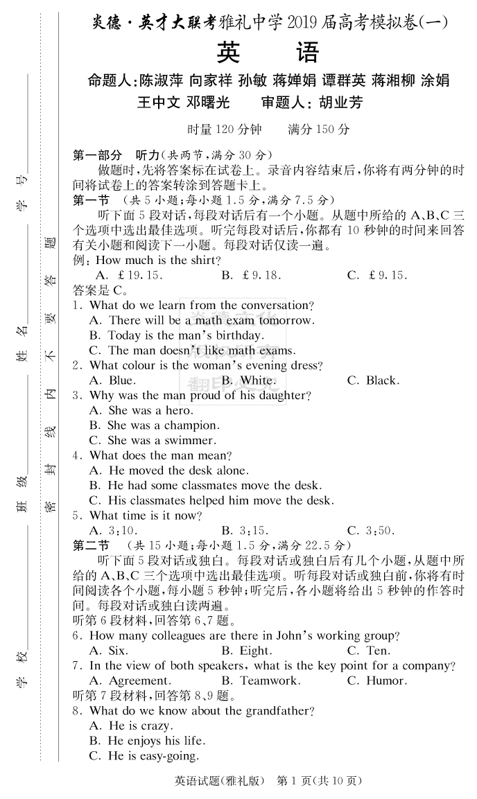 | 資源類別: | 名校月考 | |