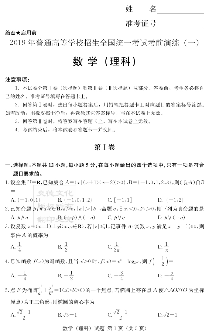 下一篇:【理綜】2019年普通高等學校招生全國統(tǒng)一考試考前演練(一)