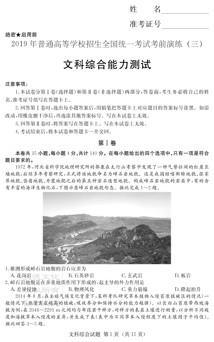 上一篇:【文數(shù)】2019年普通高等學校招生全國統(tǒng)一考試考前演練(三)