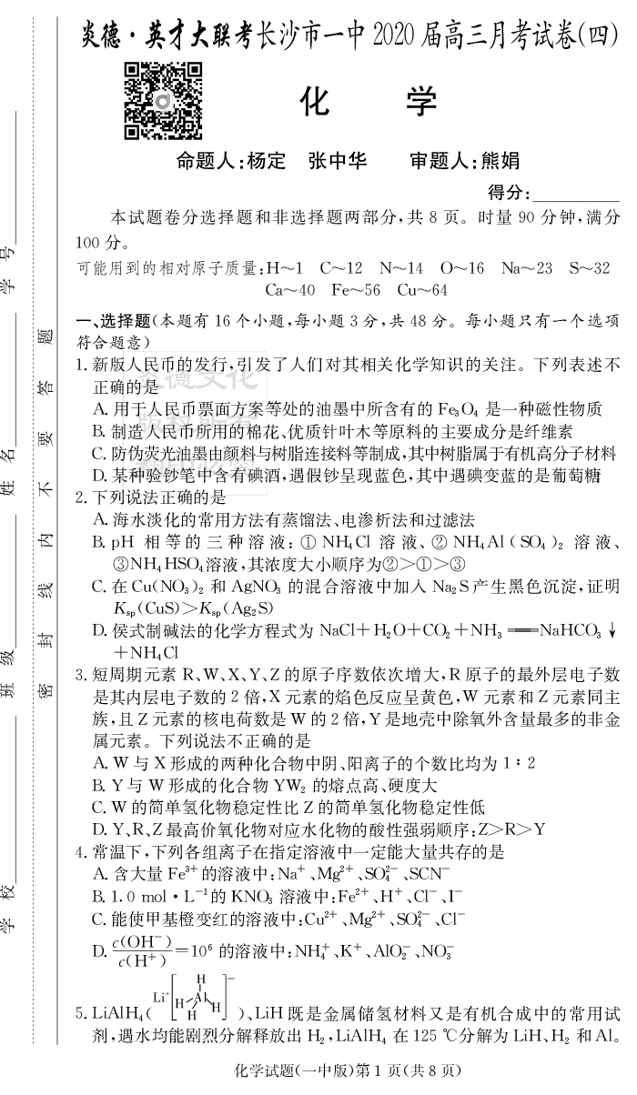 下一篇:【理數】炎德英才大聯考2020屆長沙市一中高三4次月考