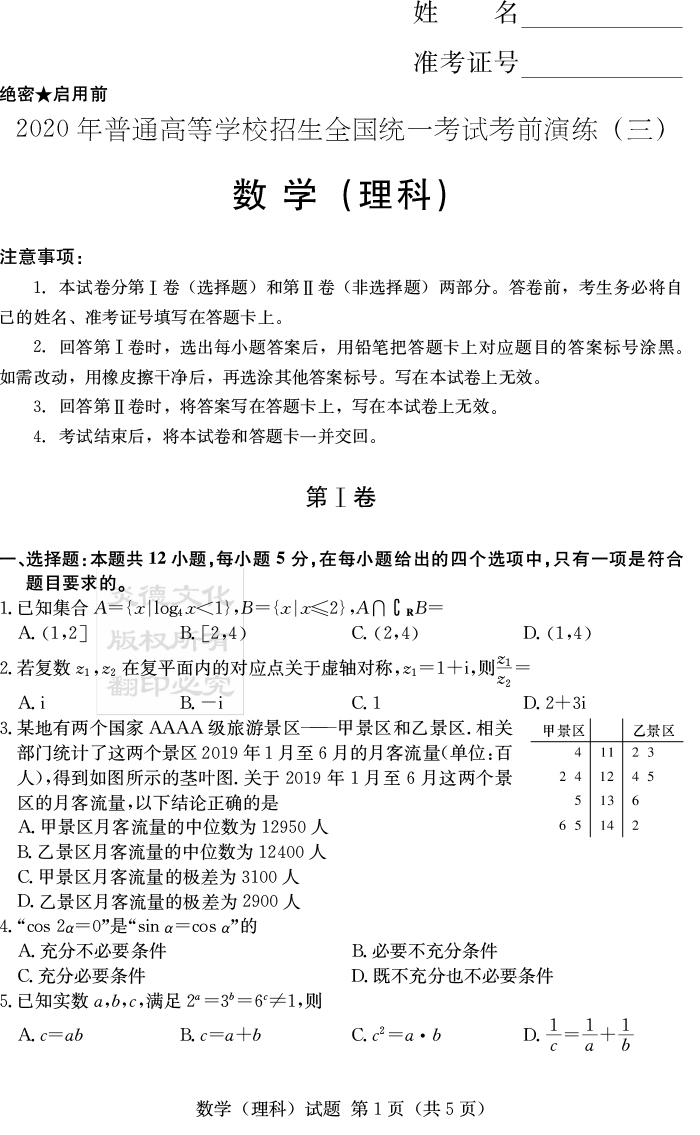 下一篇:【理綜】2020年普通高等學校招生全國統(tǒng)一考試考前演練(三)