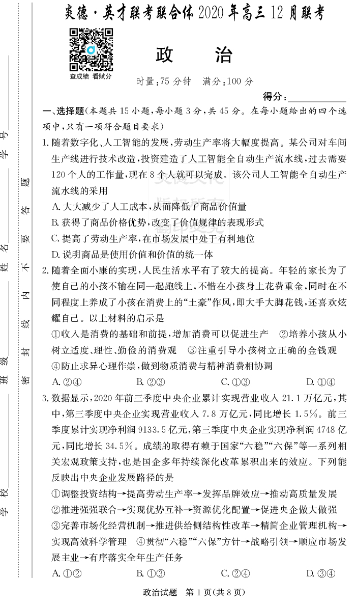上一篇:【語文】炎德英才大聯(lián)考2021屆長沙市一中高三1次月考(高三聯(lián)合體12月聯(lián)考)