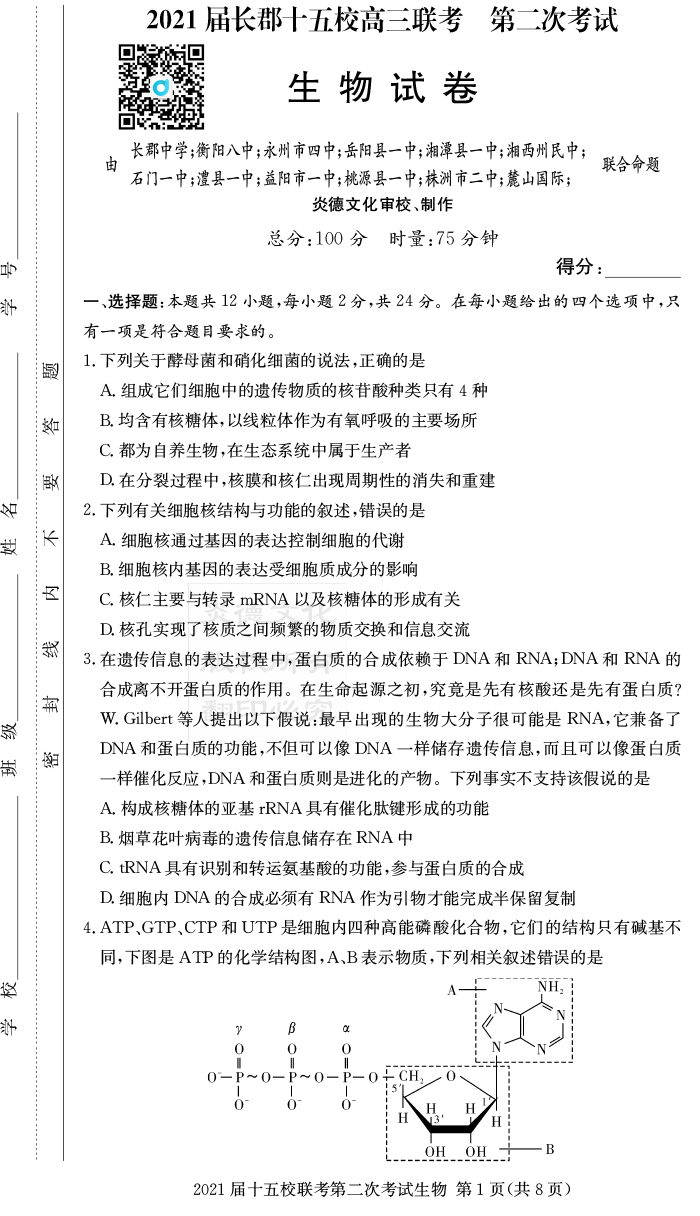 上一篇:【歷史】炎德英才大聯考2021屆長郡中學高三8次月考(十五校聯考二)