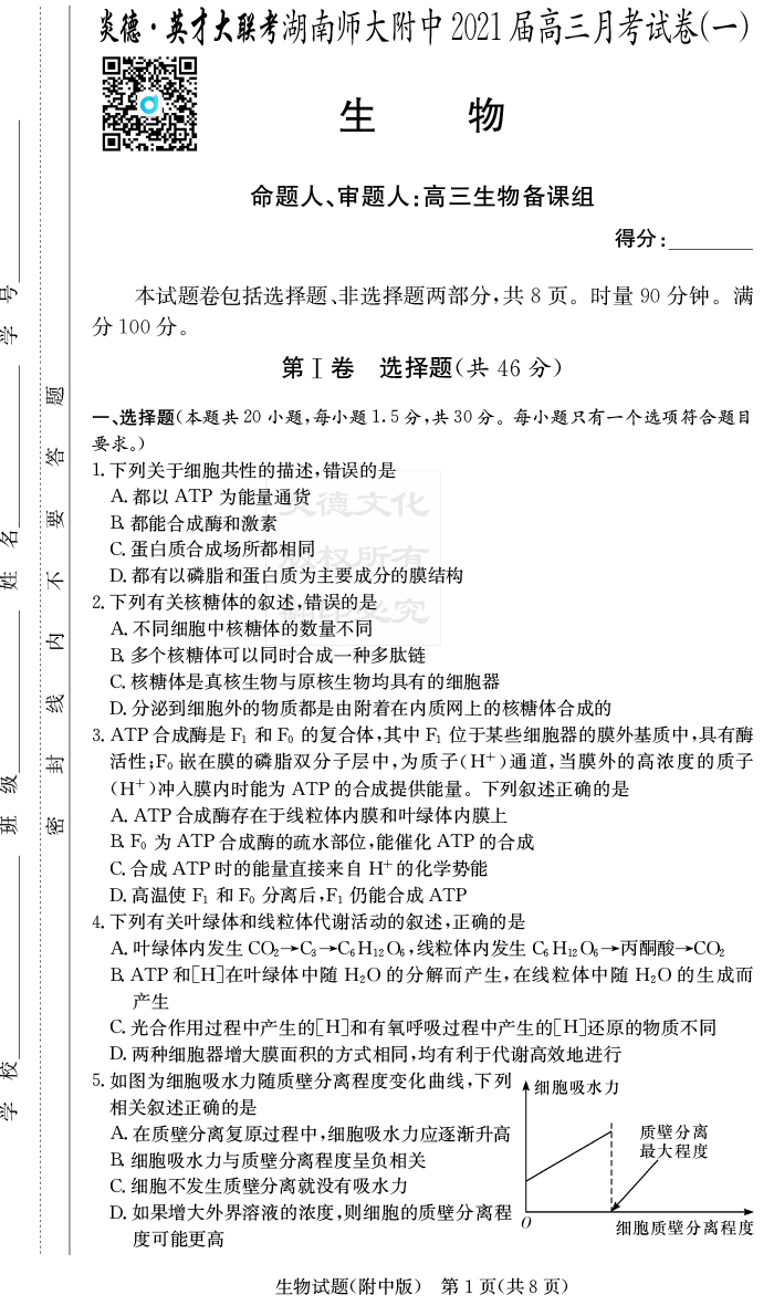 2025名師導學·名校名卷經(jīng)典試題匯編·生物