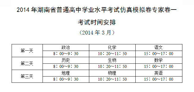 2014年湖南省普通高中學(xué)業(yè)水平考試仿真模擬卷專家卷一考試時(shí)間安排(2013.03月份)