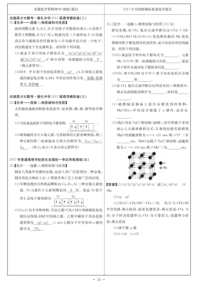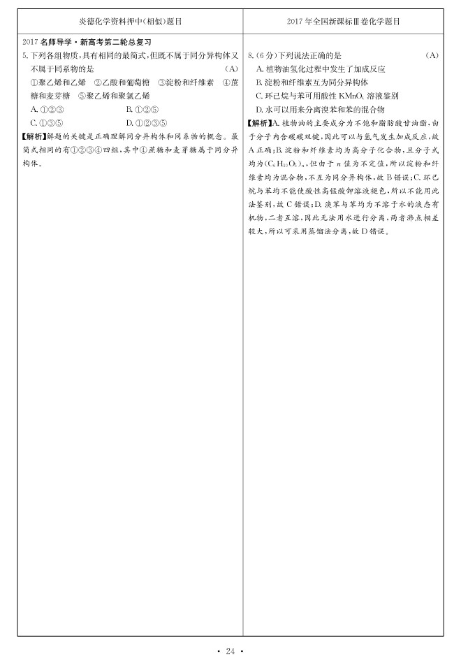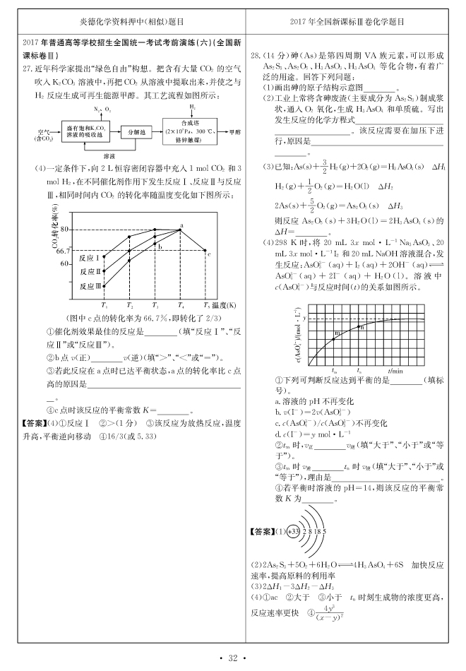 2017高考全國(guó)卷Ⅲ對(duì)分表-化學(xué)