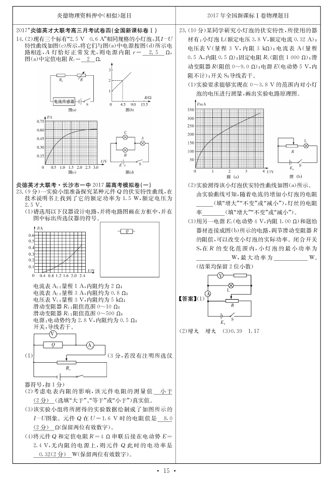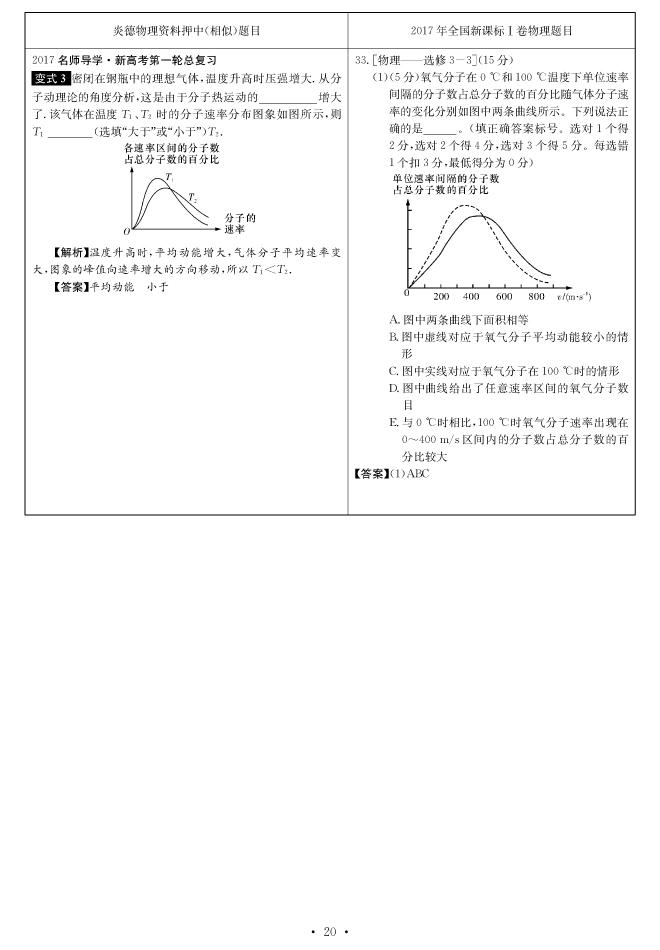 2017高考全國(guó)新課標(biāo)卷Ⅰ對(duì)分表-物理