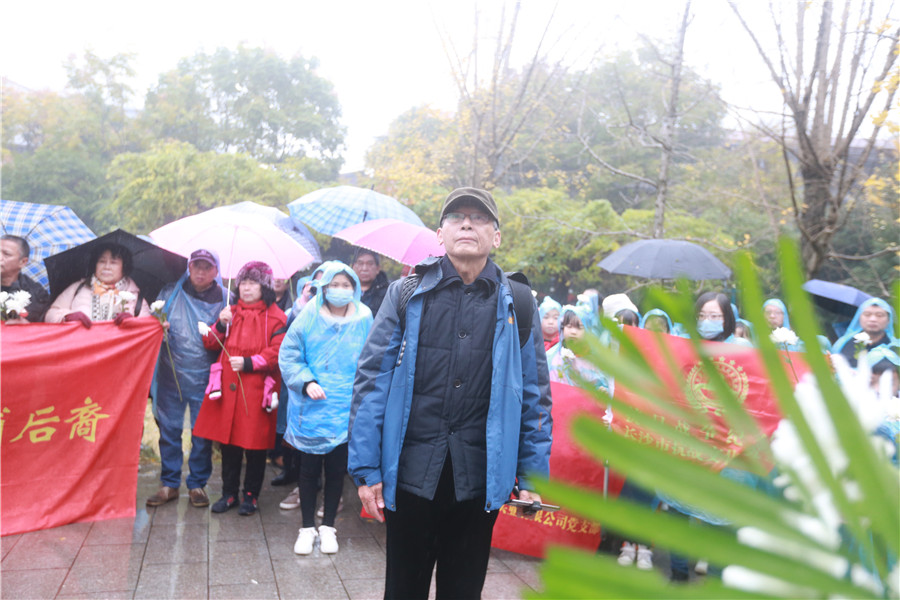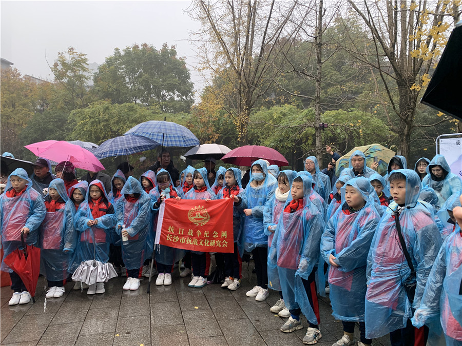 12月13日上午十點,長沙市抗戰(zhàn)文化研究會發(fā)起的緬懷抗戰(zhàn)英烈和悼念文夕大火罹難平民儀式在天心公園警世鐘下舉行。參加舉辦本次活動的還有深圳市龍越慈善基金會、湖南省黃埔軍校同學會、長沙市黃埔后裔聯(lián)誼會、長沙天心閣公園管理處、抗日戰(zhàn)爭紀念網(wǎng)、抗日戰(zhàn)爭圖書館、星城實驗三小(中嶺小學)、長郡月亮島第二小學、長沙關(guān)愛抗戰(zhàn)老兵志愿服務(wù)隊、長沙關(guān)愛抗戰(zhàn)老兵秋天班、湖南炎德文化實業(yè)有限公司、湖南炎德文化實業(yè)有限公司黨支部。參加活動的嘉賓還有原湖南省政協(xié)副主席、中國國民黨革命委員會第十二屆中央委員會委員劉曉、抗戰(zhàn)老兵陳忠民、房可吉。共有上述舉辦單位的領(lǐng)導(dǎo)、志愿者、學生、老師、黃埔后裔以及市民共計三百余人冒雨參加了本次活動!