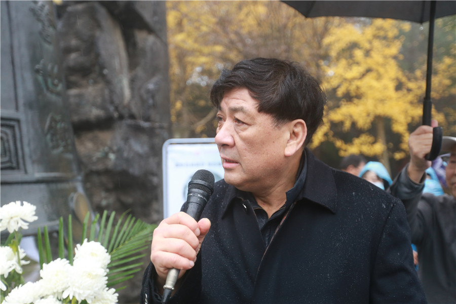 湖南省原政協(xié)副主席劉曉、湖南省黃埔軍校同學會副會長、湖南黃埔軍校同學會副會長、長沙市黃埔后裔聯(lián)誼會會長劉園、長沙關(guān)愛抗戰(zhàn)老兵志愿服務(wù)隊孟企平,代表參加本次祭奠儀式的全體市民,向抗戰(zhàn)英烈和文夕大火罹難平民紀念碑敬獻花籃。