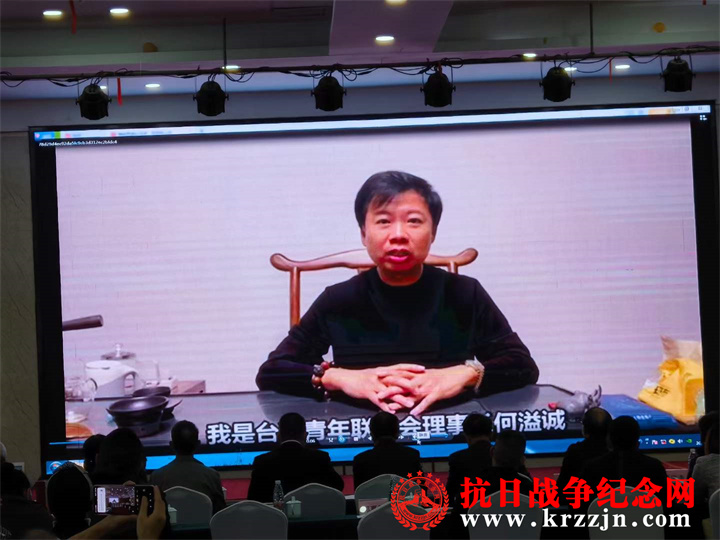 臺(tái)灣青年聯(lián)合會(huì)會(huì)長(zhǎng)何溢誠(chéng)通過(guò)視頻連線致辭。