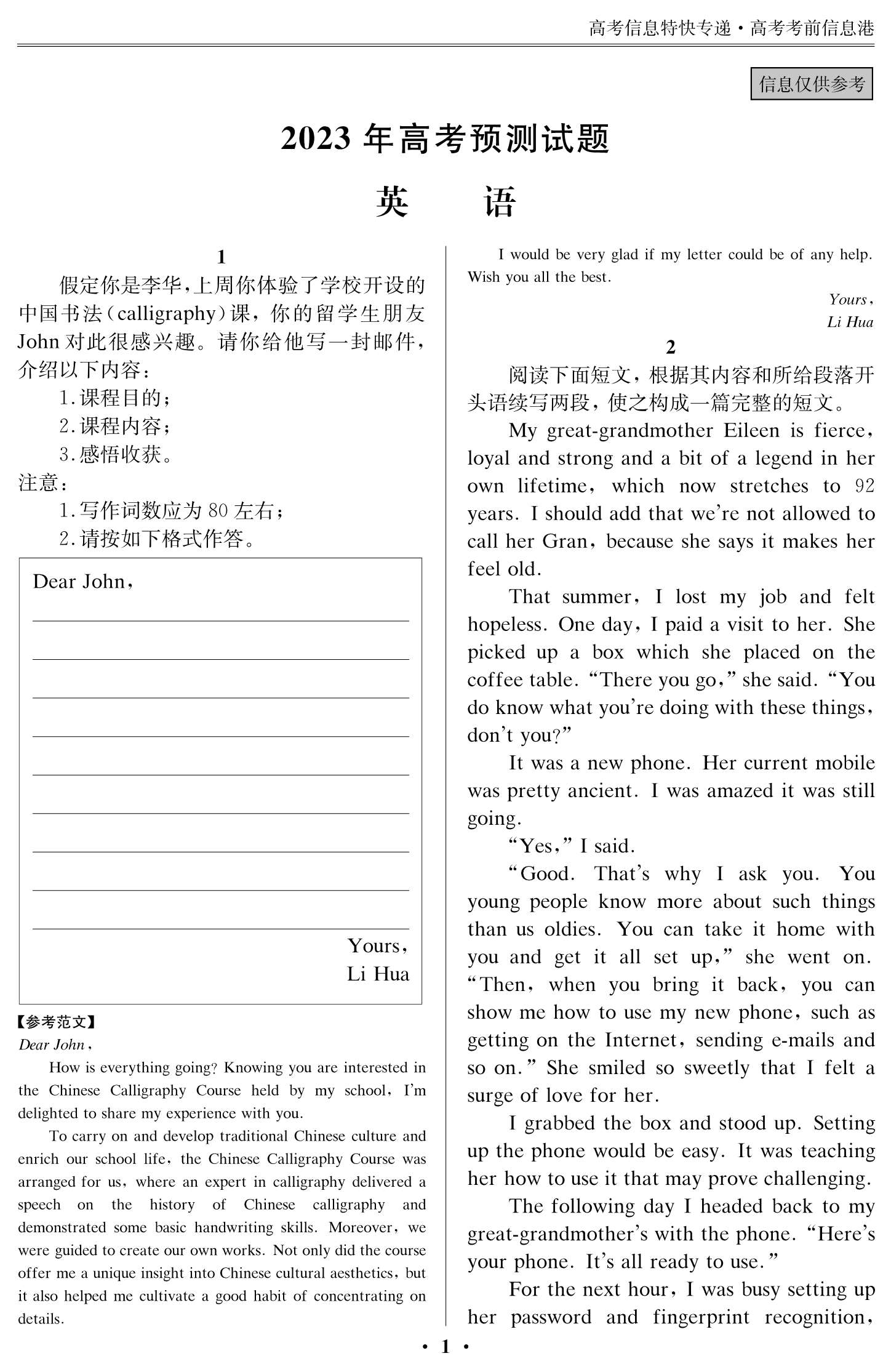 2023年高考考前預(yù)測信息補(bǔ)充內(nèi)容(一)5月30日