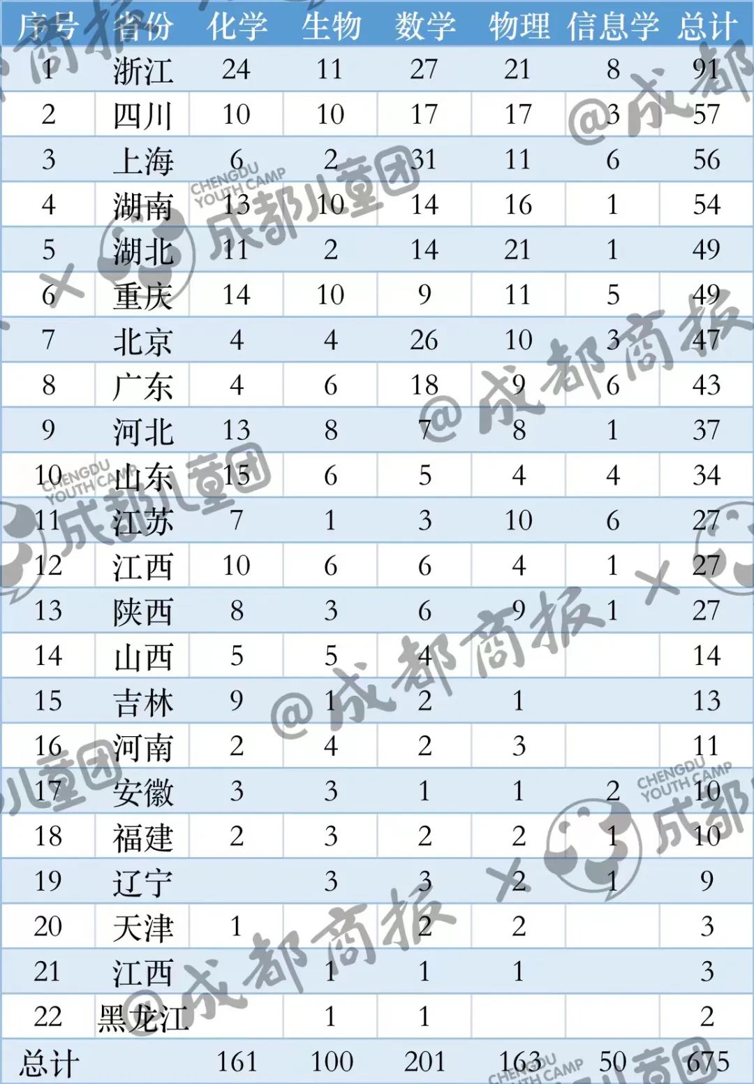 那么,在這場堪稱國內(nèi)高中生最頂尖的學(xué)術(shù)性比賽中,哪些高中擠入了國內(nèi)的頭部梯隊?又有哪些城市的綜合實力最強呢?成都商報教育發(fā)布記者僅以2022年全國中學(xué)生五項學(xué)科競賽為例,對2022年的高中五大學(xué)科競賽進(jìn)行了數(shù)據(jù)分析。